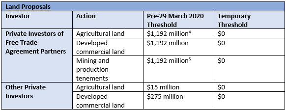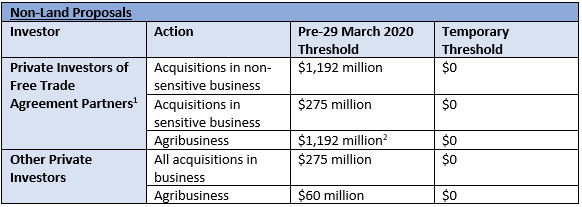 However, not all foreign investments are impacted by the changes. It will remain business as usual for all foreign government investment and investment in residential land, which have always been subject to a $0 threshold